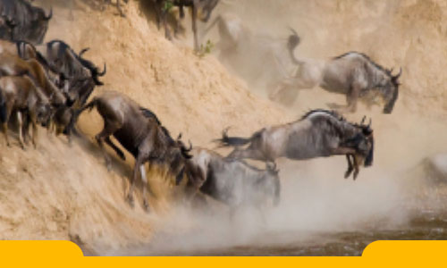 Held as one of the Seven Wonders of the World, witnessing the Great Migration can be a life-changing experience. Have a preview experience in this wildebeest crossing video taken by our guest. We specialize in tailor-made great wildebeest migration safaris. The river crossing is the most-awaited phenomenon where millions of wildebeests move from one place to another in search of greener pastures. We have a vast network of accommodation providers from standard to luxury tented camps and lodges close to the Mara river, the heart of the action. Luxurious tents are available, which are complete with amenities such as, bathroom, spacious beds, food, even a bar. As you follow the Great Migration, you can also encounter herds of zebras and gazelles huddling across the plains and volcanic grasslands of the safari . This experience is packed with action, as migration herds attract predators like big cats, crocodiles, and hyenas. The Great Migration is once in a lifetime experience that lets you witness a wild safari and the real face of nature. It's a global phenomenon that happens only in a certain period of time within a year. Reach out to us if you want to experience the magic of the Great Migration yourself.